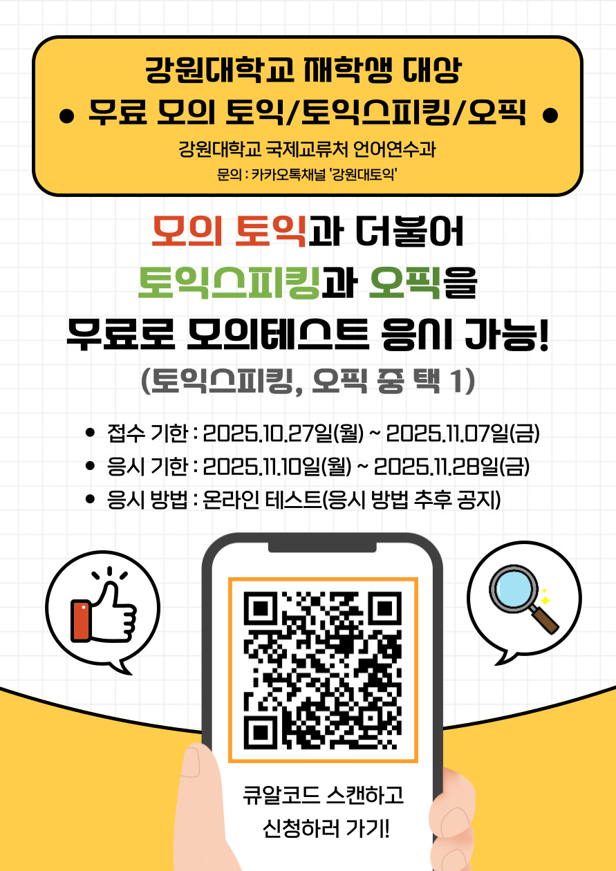 2025학년도 2학기 재학생 무료 모의 어학시험 실시 안내